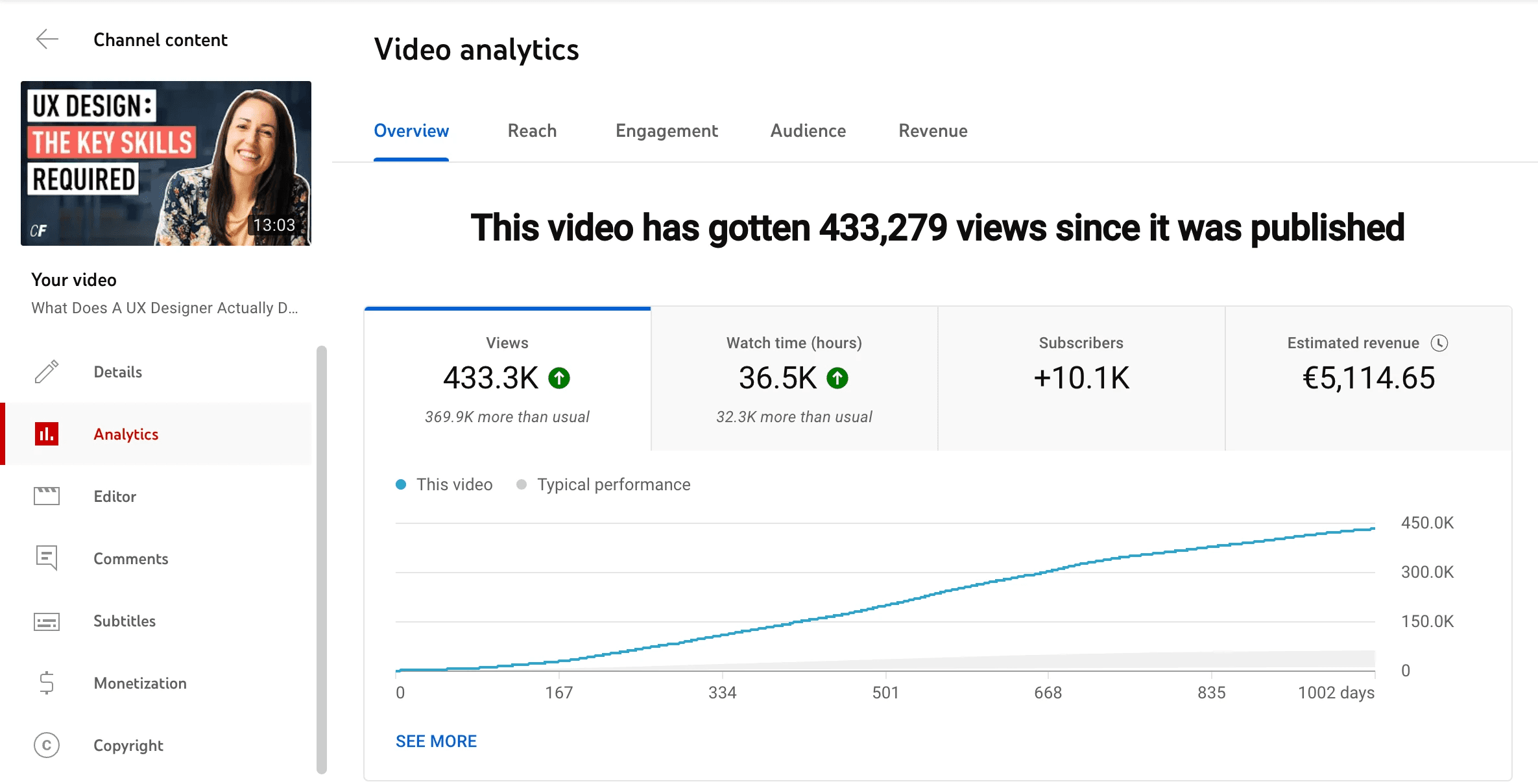 We decided to focus on one clear topic, aligning it with CareerFoundry's flagship course offering: UX Design. I'd already experienced significant growth with this topic at AJ&Smart, with several videos reaching six-figure viewership. We knew there was a hungry audience.