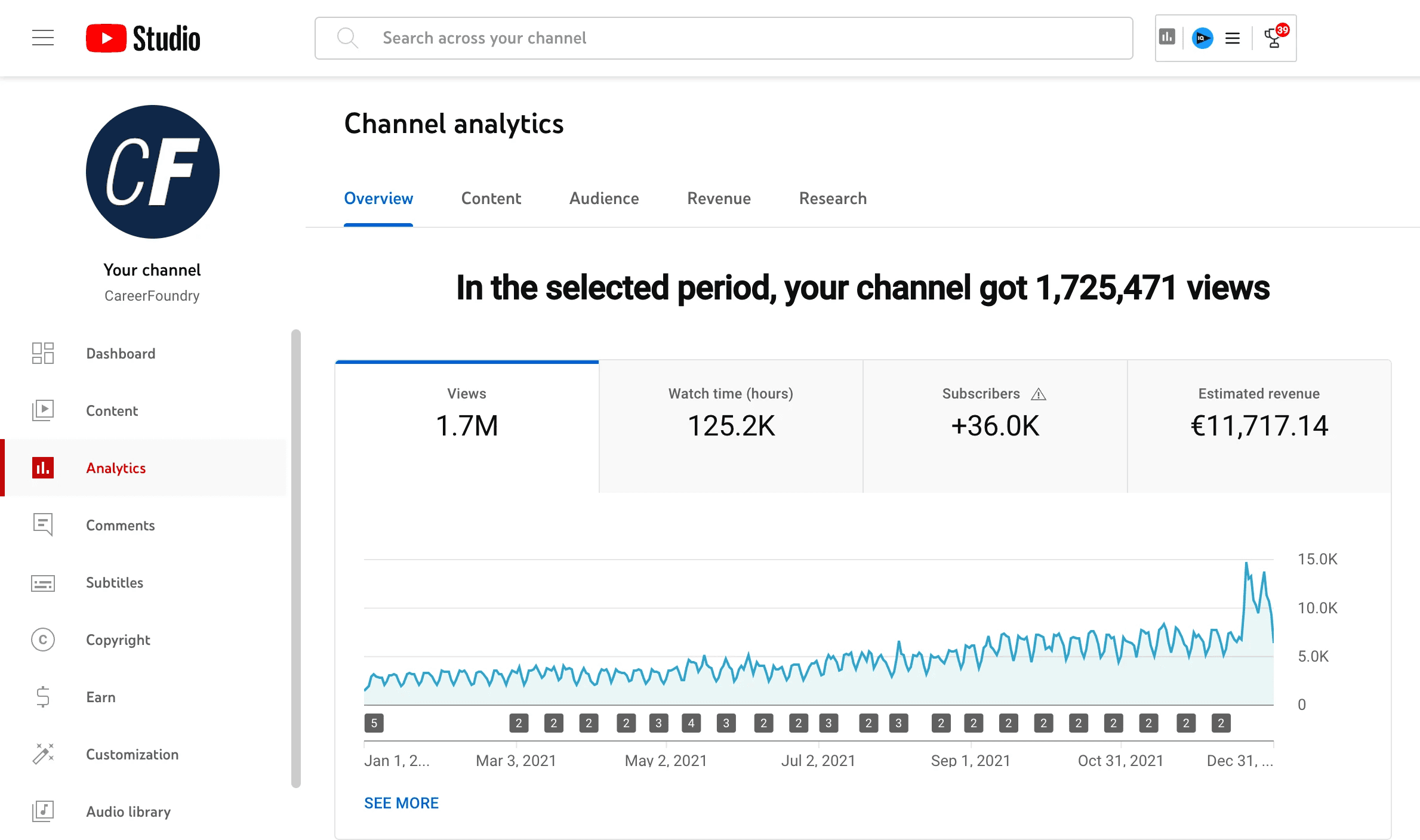 2021 was the first year the YouTube channel proved it could be more than a brand asset. It became a foundational organic growth lever for CareerFoundry.