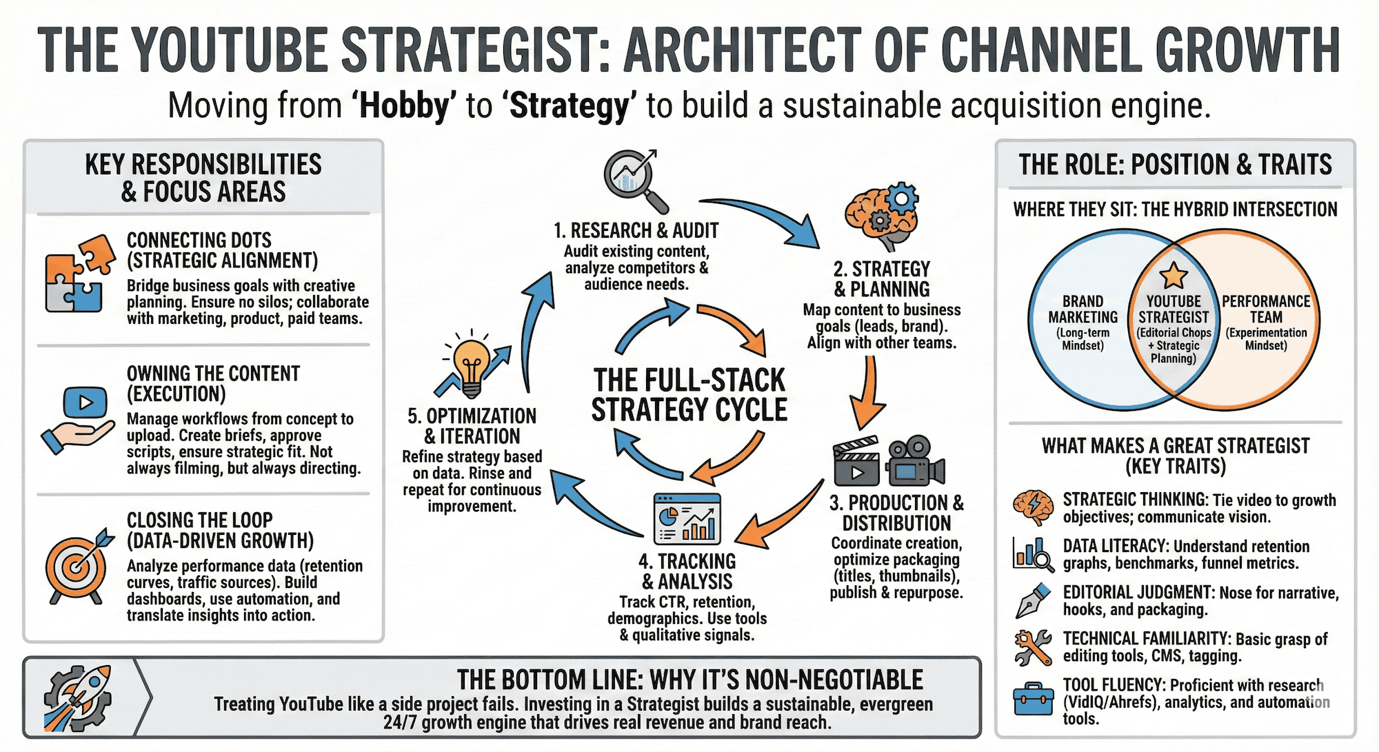 But when YouTube works? It really works. Channels become acquisition engines. Brand reach expands. Sales grow. And behind nearly every success story is one underappreciated role: the YouTube Strategist.